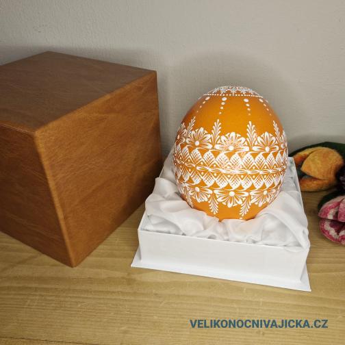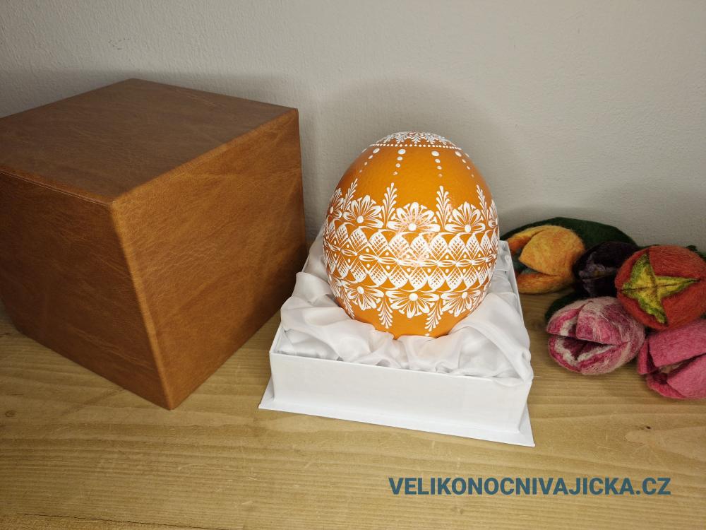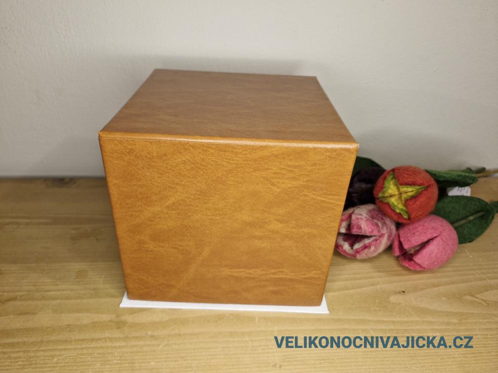 Dárková krabička na pštrosí vajíčko. Tvrdá papírová krabička potažená jakoby kůží. Vnitřní část je z látky. Ideální, když dáváte kraslici jako dárek. Uvedená cena je pouze za dárkovou krabičku.