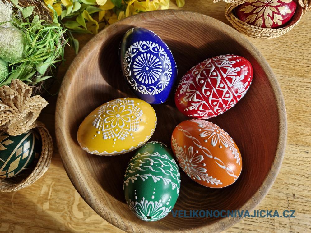 Velikonoční kraslice ručně malované voskem, které budou zdobit Váš stůl a vykouzlí Velikonoční atmosféru.