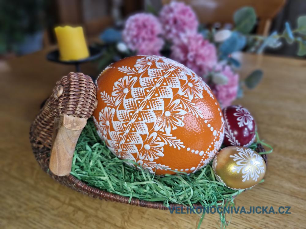 Velikonoční pštrosí kraslice ručně malovaná voskem. Vzor malovaní i barva jsou stejné jako na fotografii.