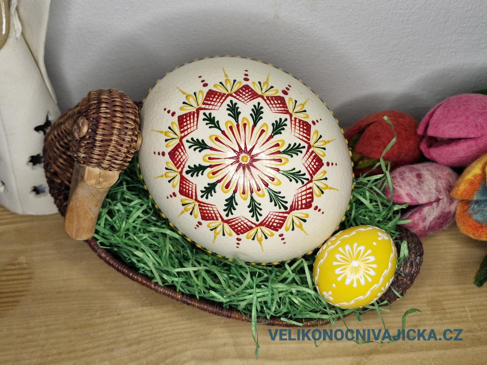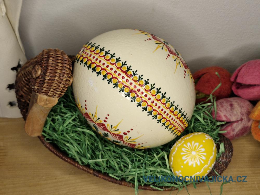 Velikonoční pštrosí kraslice ručně malovaná voskem. Vzor malovaní i barva jsou stejné jako na fotografii.