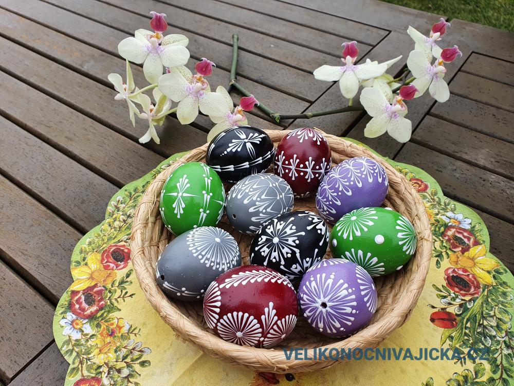 Velikonoční kraslice ručně malované voskem, které budou zdobit Váš stůl o Velikonočních svátcích.