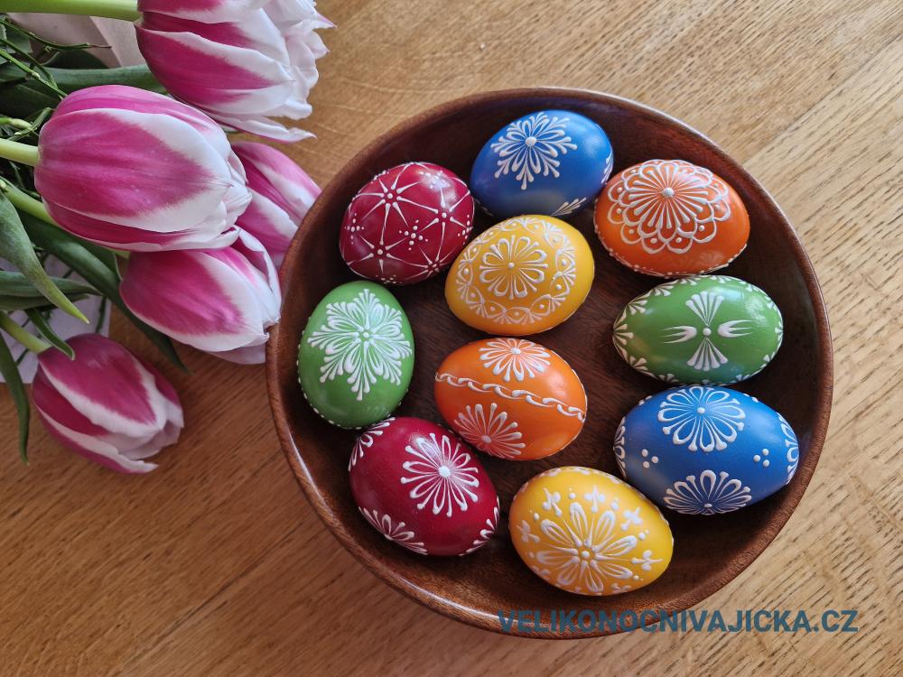 Velikonoční kraslice ručně malované voskem, které budou zdobit Váš stůl o Velikonočních svátcích.